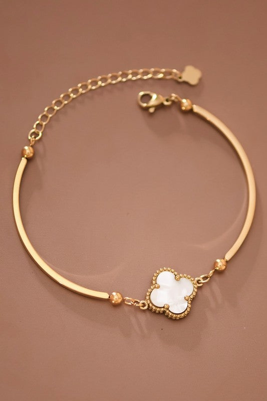 Elevate your ensemble with our exquisite 18K gold plated stainless steel clover chain bracelet. Meticulously crafted to be hypoallergenic, waterproof, fade-resistant, and tarnish-free, this 7" bracelet with 2" extender offers both elegance and practicality. The delicate clover design symbolizes good fortune while transitioning seamlessly from everyday sophistication to evening refinement.