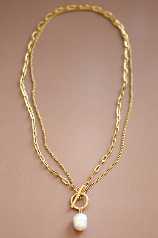 Elevate your style with this dainty 18K gold-plated stainless steel multi-layer necklace. Measuring approximately 17.5" long and secured with a toggle clasp, it offers a delicate yet striking look. Hypoallergenic and waterproof, this necklace resists fading and tarnishing, ensuring lasting beauty and comfort for everyday wear. Perfect for adding a touch of elegance that endures.